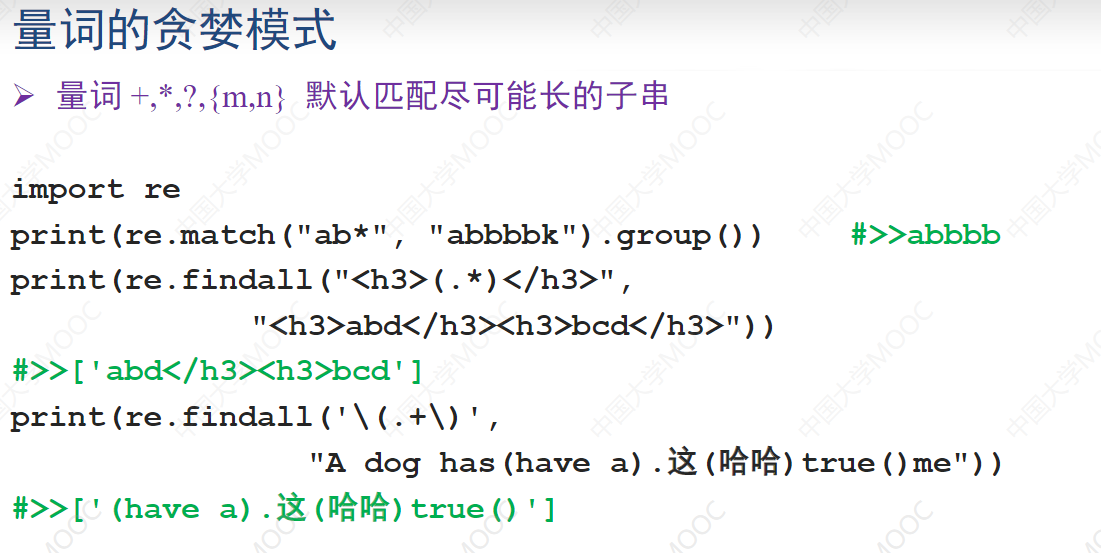 其实是很好的理解的就是会找最远的边界标志咯,尽可能让匹配的字符串长一点。如果不在量词后面加上问号的话就默认是贪婪模式。