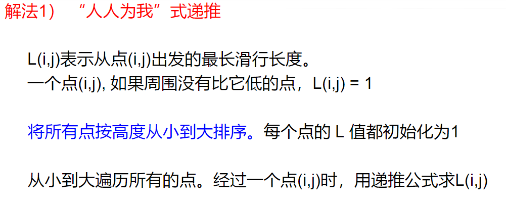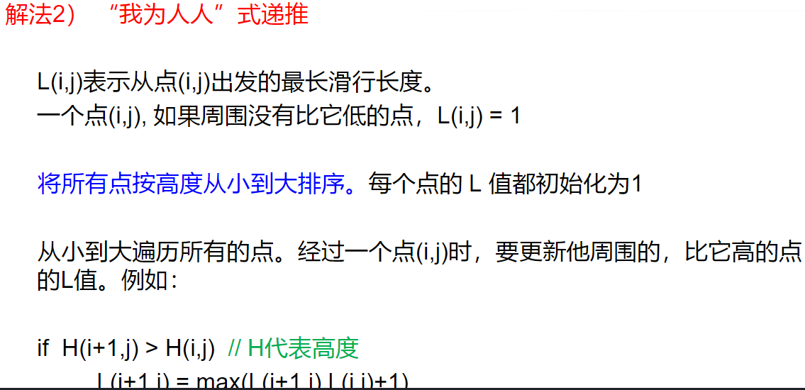 后面的代码是解法2:找到一个点,找周围的更小的值,这个值就是周围比这个值小的值中最大的加一