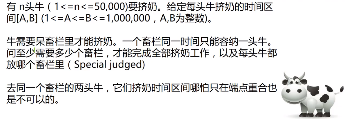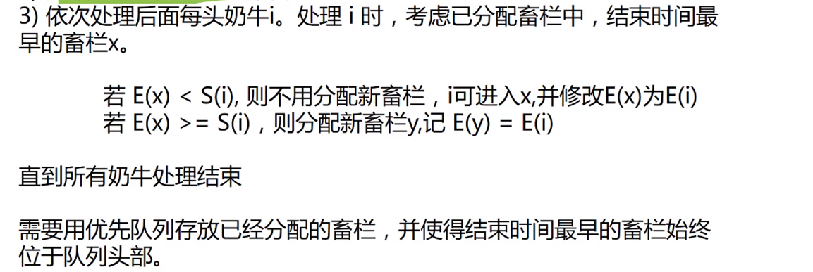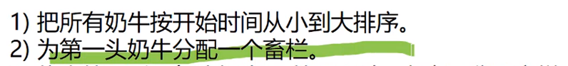 这个地方用优先队列的时间复杂度低,否则每一次找畜栏的话都要遍历一边所有的畜栏时间复杂度太高了。所以用优先队列,按照结束时间的早晚压入队列中。