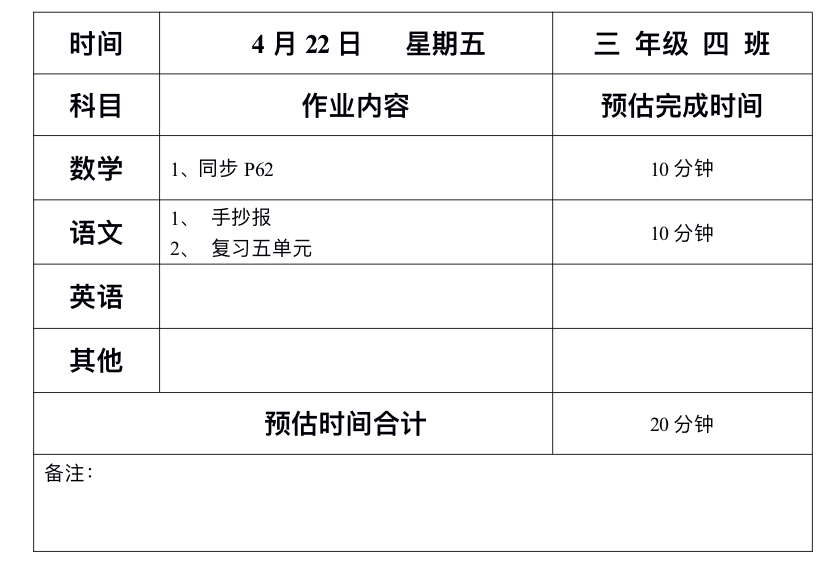 4月22日班级作业