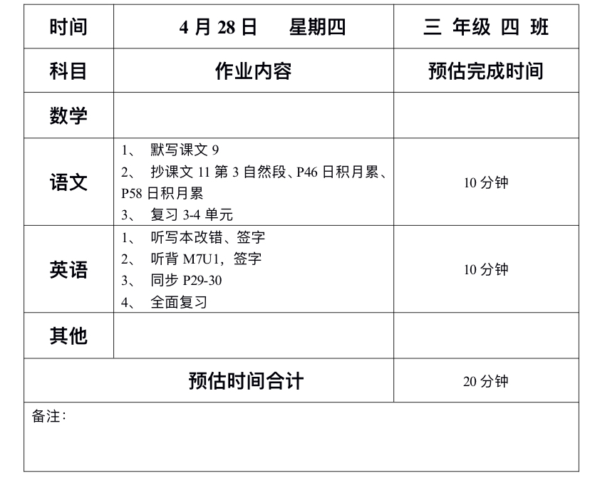 4月28日班级作业