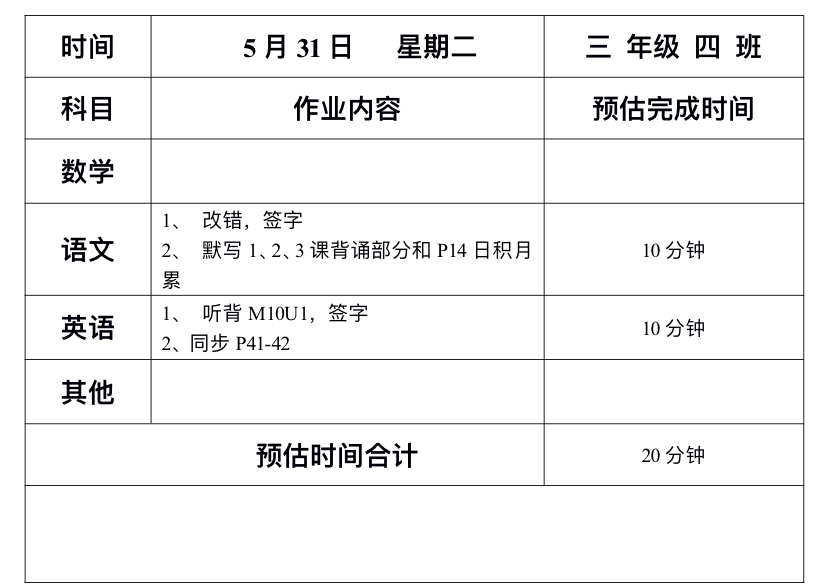 5月31日班级作业