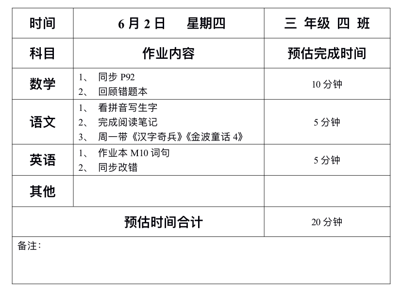 6月2日班级作业
