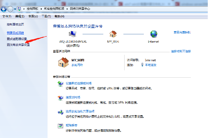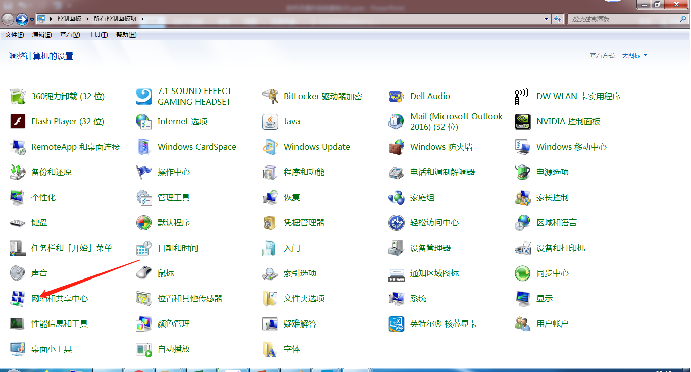 控制面板,点击网络和共享中心