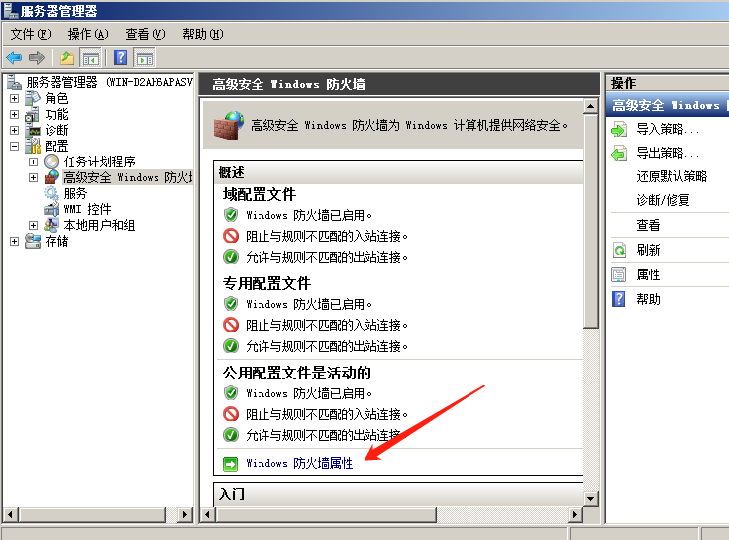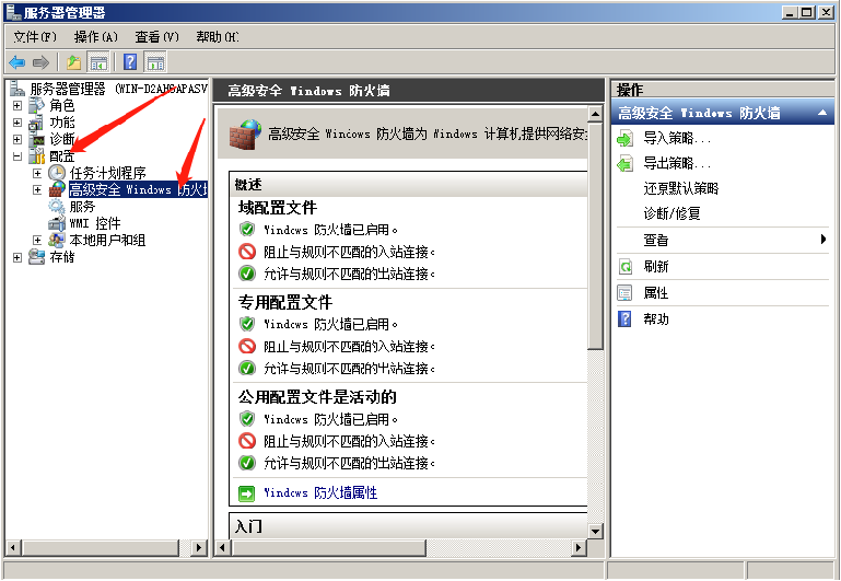 - 打开服务管理器后->配置->高级安全windows防火墙