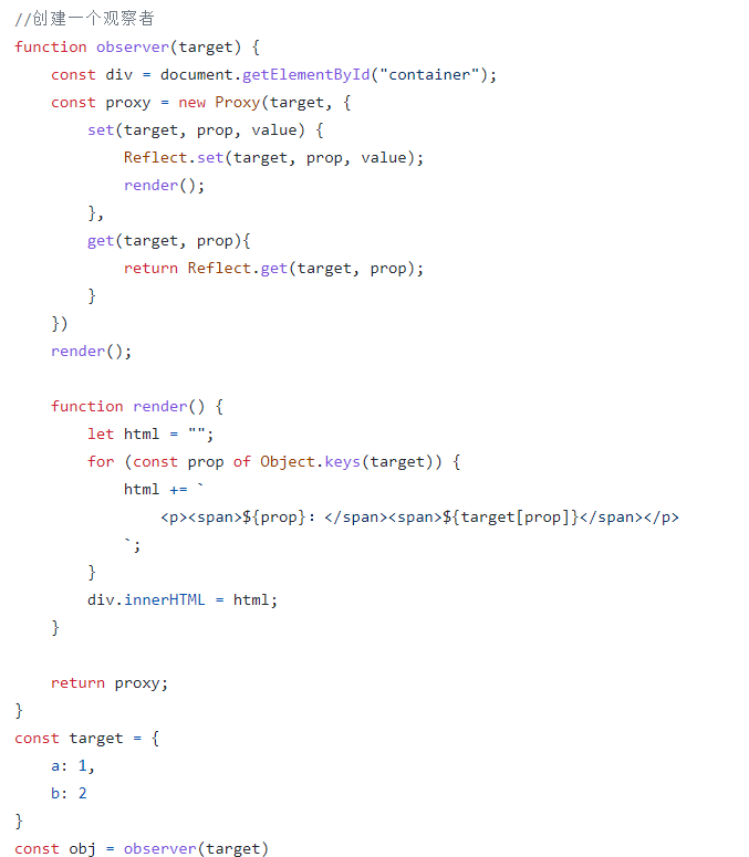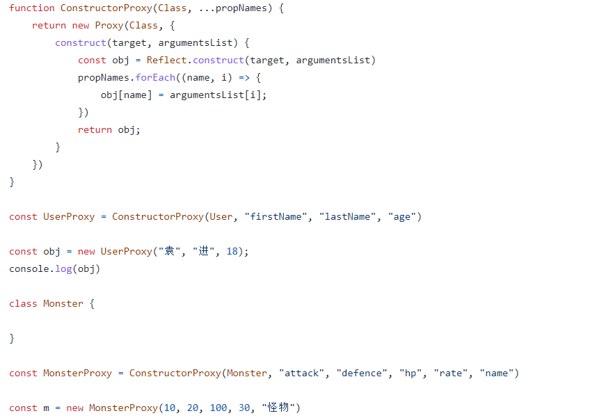 //代理一个目标对象//target:目标对象//handler:是一个普通对象,其中可以重写底层实现//返回一个代理对象new Proxy(target, handler)```