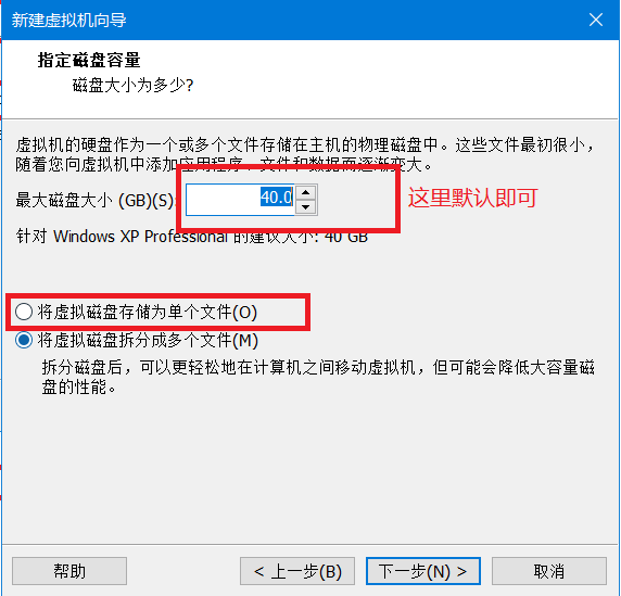 下面一项点:“将虚拟磁盘存储为单个文件”