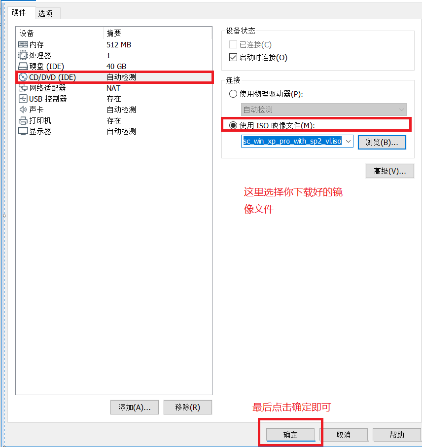 重点是在CD/DVD中一定要插入自己已经下载好的镜像文件!