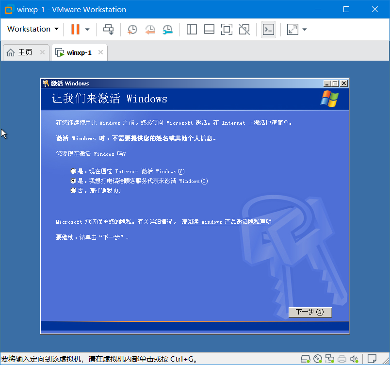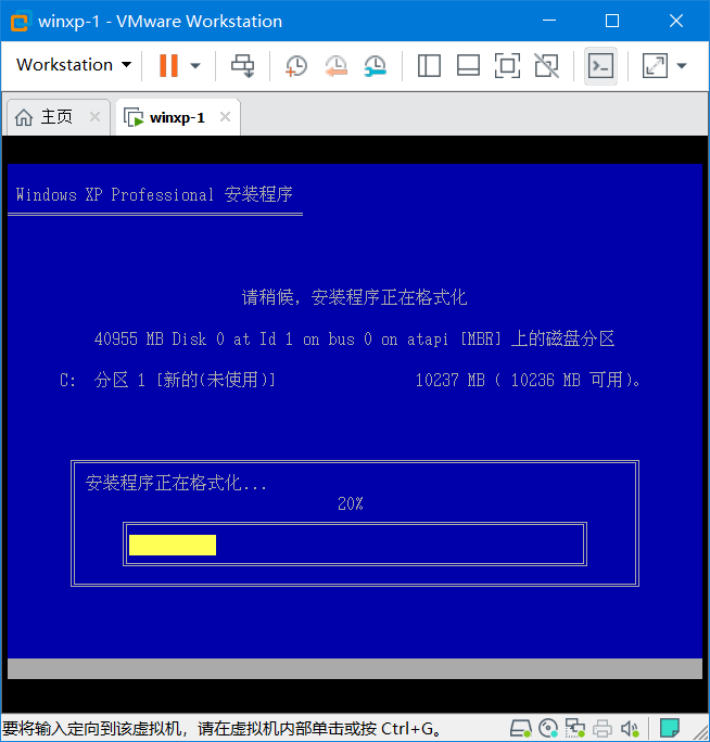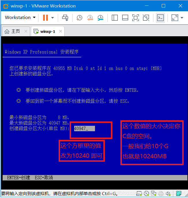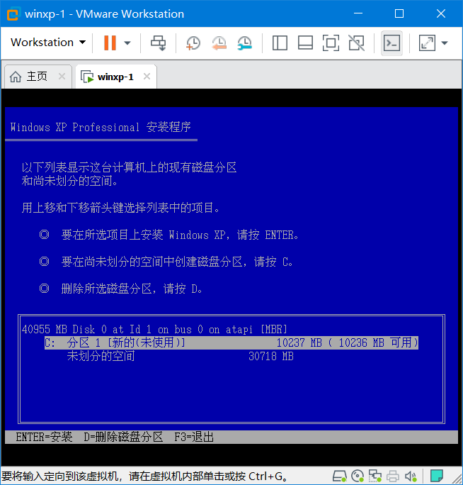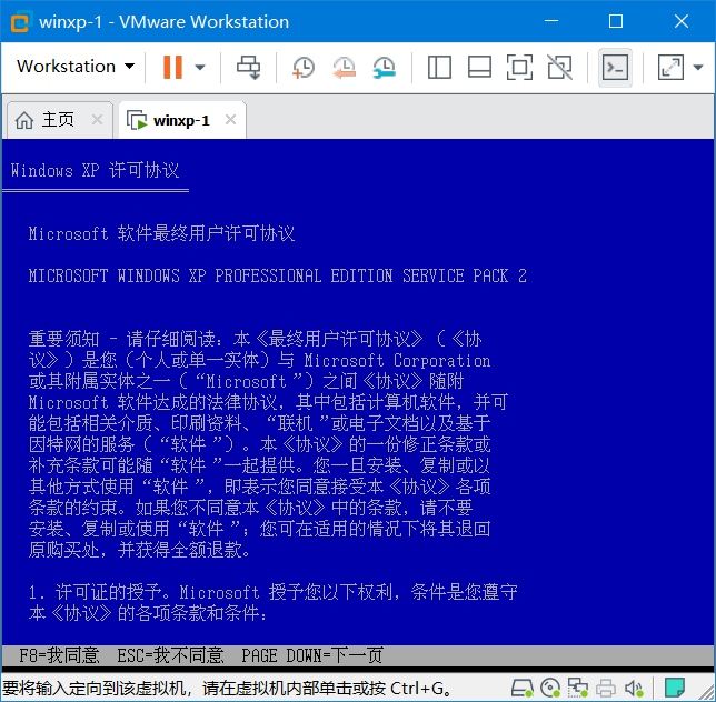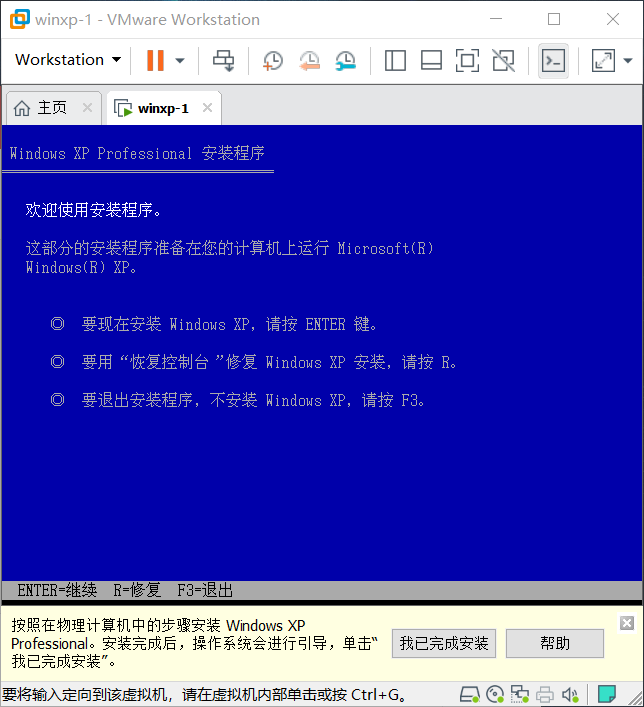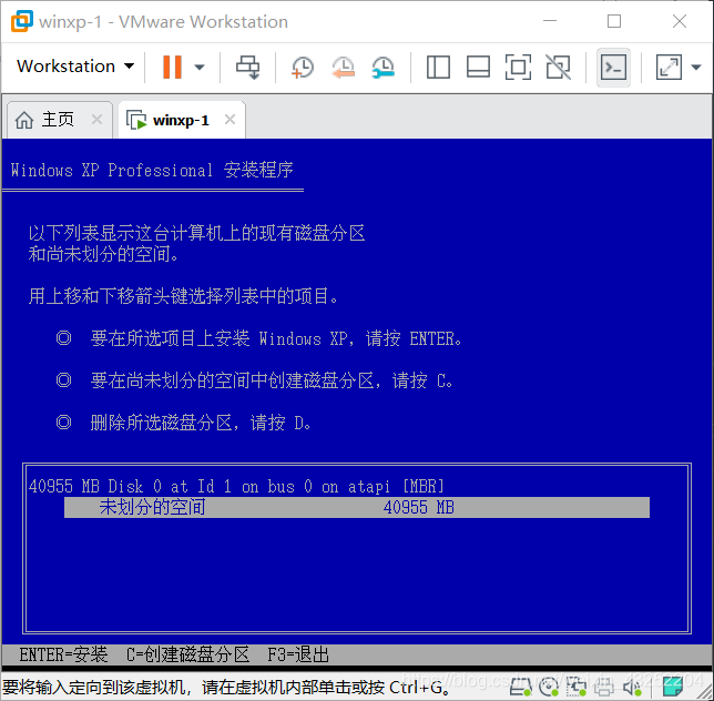 记住鼠标一定到点到虚拟机里面,按ENTER键安装XP