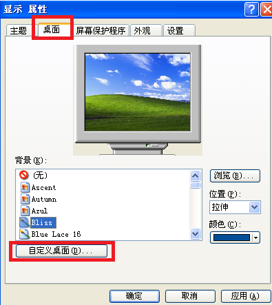 依次点击桌面,自定义桌面,进入以下界面,之后点击确定即可。