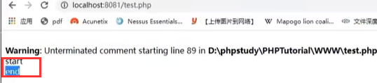 访问test.php,结果 只实例化了对象$a,对象并没有调用类里面的任何方法,页面中就输出了start和end,
