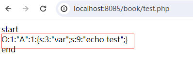 代码上加上序列化操作,echo serialize($a);,就会输出字符串:O:1:"A":1:{s:3:"var";s:9:"echo test";}