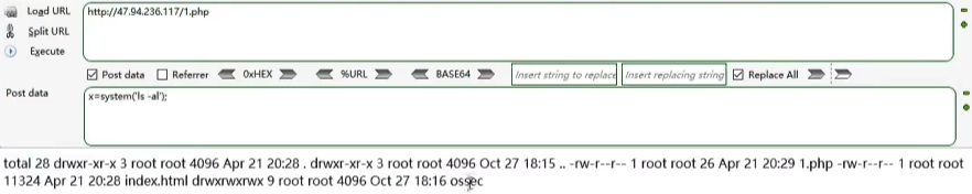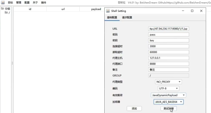 ② 访问47.xx.xx.xx/1.php,用工具连接(菜刀或哥斯拉)