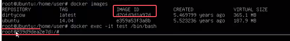 # 使用本地1234端口连接docker的1234端口运行dirtycow镜像,并将其临时命名为test
