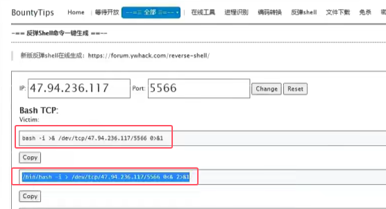 生成反弹shell命令:如果反弹不成功,多条命令分别尝试