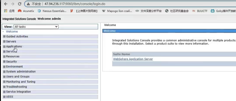 漏洞探测在8880端口,后台是9060端口,解析是9080端口