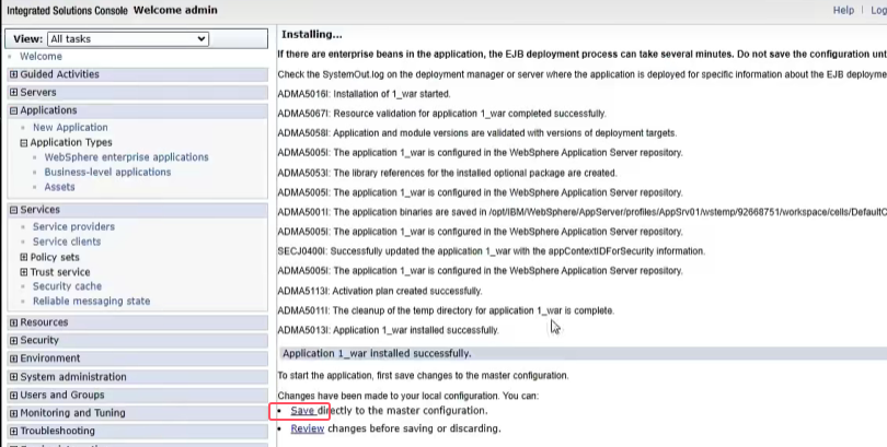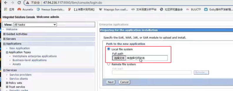 点击applications下的application types 在点击websphere enterprise applications,在这里页面中点击install