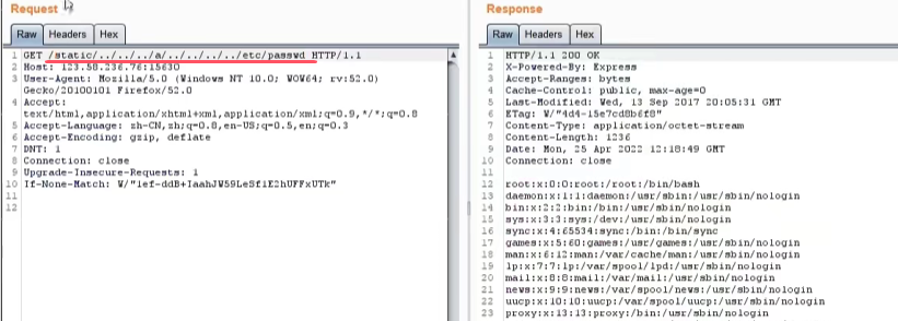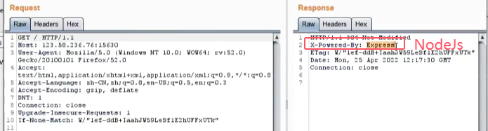 在返回包response中出现:X-Powered-By: Express 基本上可以确定是note.js