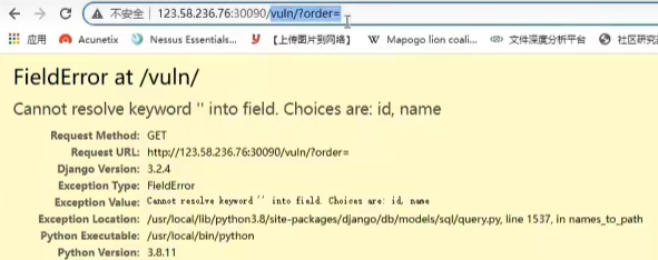 测试点:http://123.58.236.76:30118/vuln/?order=
