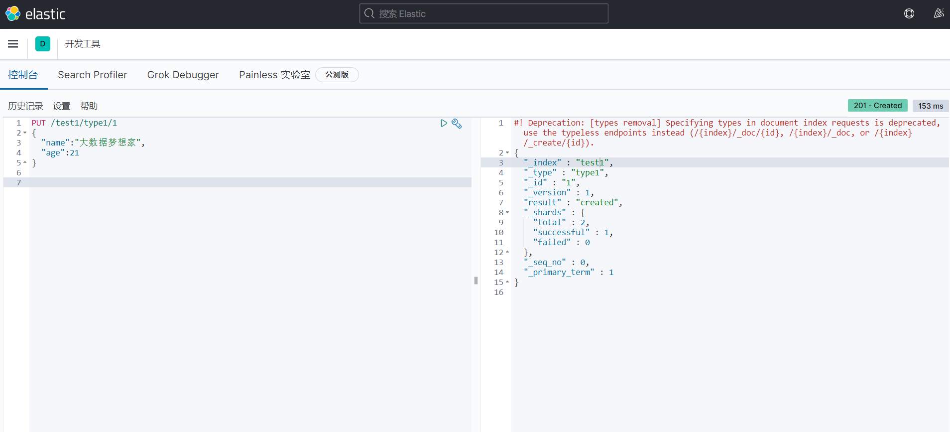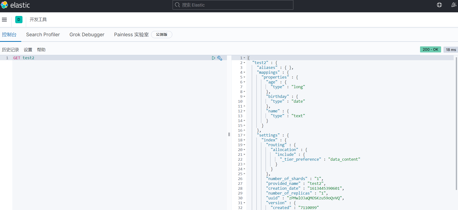 说到分词器解析,就不得不提到两种数据类型:text和keyword。下面我们就来做个测试: