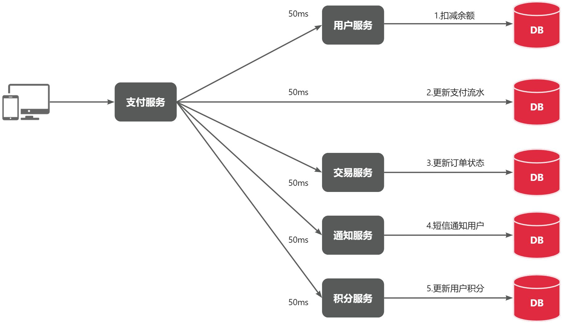 假如每个微服务的执行时长都是50ms,则最终整个业务的耗时可能高达300ms,性能太差了。