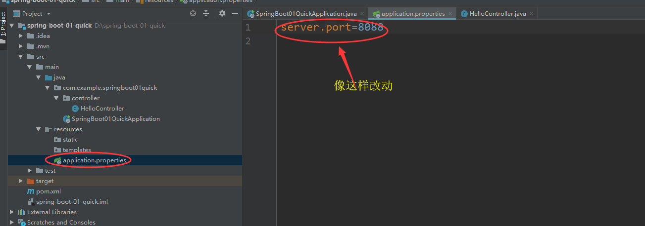 | application.properties:Spring Boot应用的配置文件。(虽说其配置文件都已经自动配置好,但是我们可以通过这个文件去修改一些默认设置!)