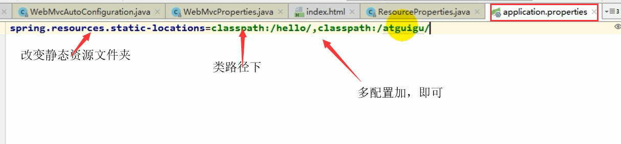 localhost:8080/abc === 去静态资源文件夹(就是存放静态资源的那些文件夹)里面找abc