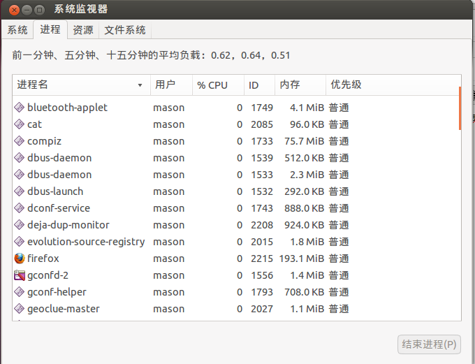 ubuntu下的任务管理器打开方式:命令行输入‘gnome-system-monitor’即可,展示如下: