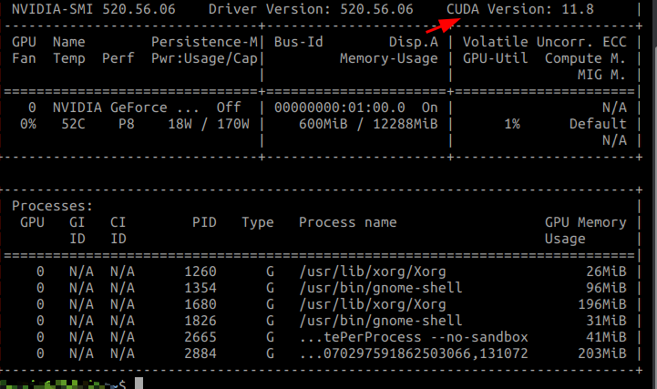 sudo reboot或者手动重启 - 重启后,在终端执行下面命令查看驱动是否安装成功