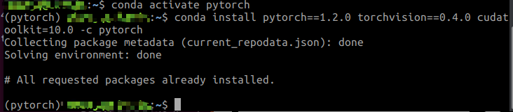 conda install pytorch==1.2.0 torchvision==0.4.0 cudatoolkit=10.0 -c pytorch