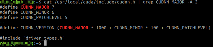 cat /usr/local/cuda/include/cudnn.h | grep CUDNN_MAJOR -A 2