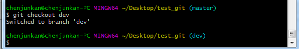 2.如果此时我想跳到dev分支去开发的话那么执行:git checkout dev