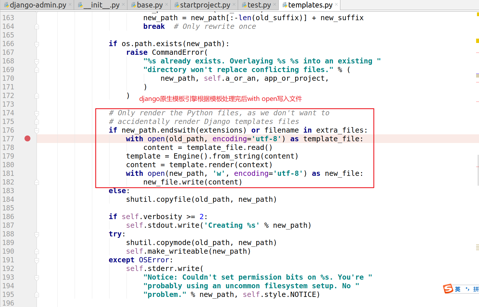 我们在django源码里面django/下创建django-admin.py,把软件目录的代码拷贝过来使用。