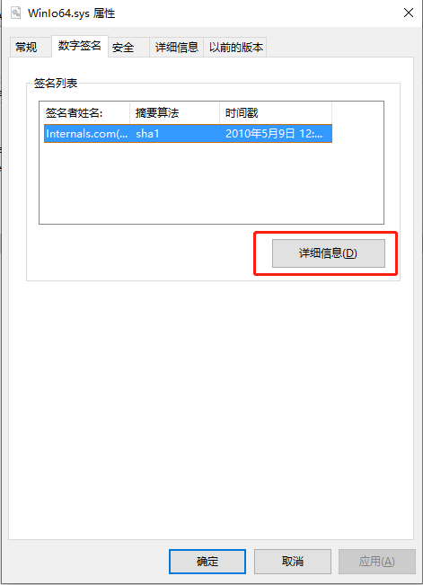 1. WinIo64.sys -> 右键属性 -> 数字签名 -> 详细信息