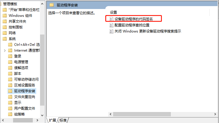 3. 依次点击 管理模板 -> 系统 -> 驱动程序安装
