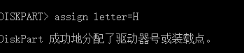 再assign letter= X ( X为想要分配给U盘分区的卷标,比如X为H)。