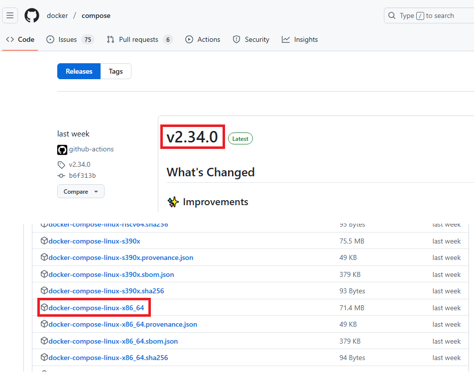 sudo curl -L "https://github.com/docker/compose/releases/download/v2.34.0/docker-compose-$(uname -s)-$(uname -m)" -o /usr/local/bin/docker-compose
