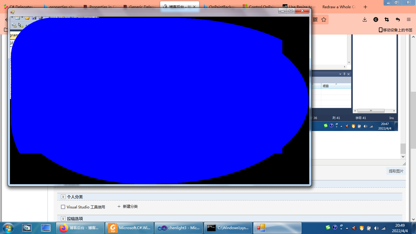 也就是说椭圆并没有随着windows forms框的扩大而自动刷新覆盖。