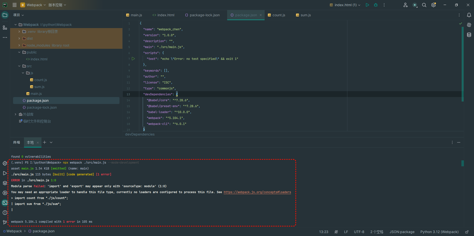 ./src/main.js 115 bytes [built] [code generated] [1 error]