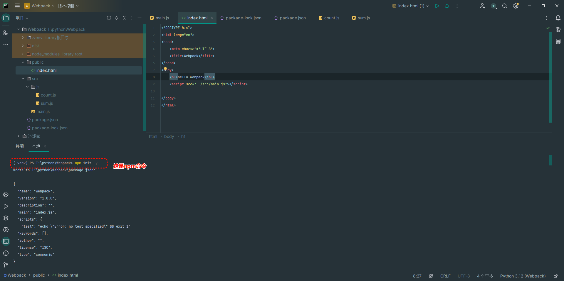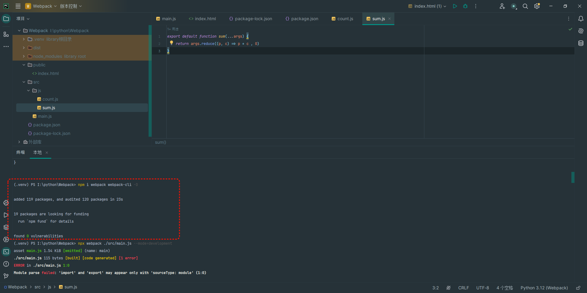 (.venv) PS I:\python\Webpack> npm i webpack webpack-cli -D