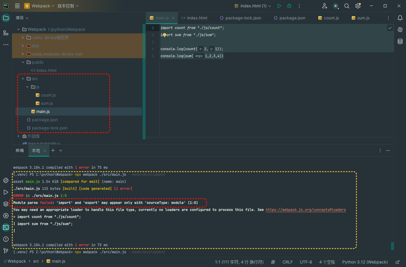 (.venv) PS I:\python\Webpack> npx webpack ./src/main.js --mode=development