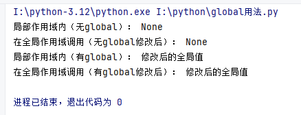 测试阶段:先执行无global函数def no_global_demo(),再执行有global函数def has_global_demo(),结果如下: