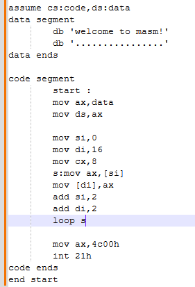 ; 功能:将data段中"welcome to masm!"复制到后续16字节占位区