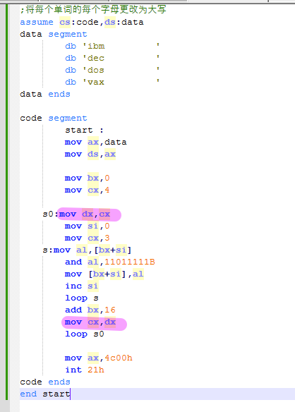 loop s ; 循环指令:CX -= 1;若CX≠0则跳回s,否则退出循环