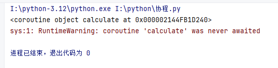 说明你调用了 async def calculate(...),但没有用 await 或 asyncio.run() 来真正执行它。Python 只是创建了一个协程对象,然后就结束了程序,导致协程“被遗忘”,于是发出警告。