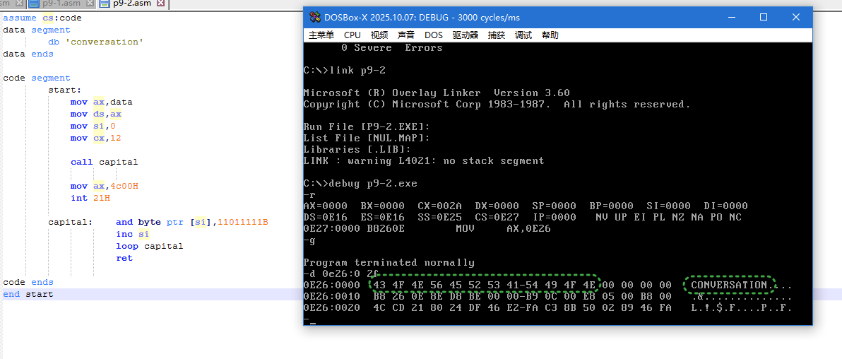 call capital ; 调用大写转换子程序,处理SI指向的字符串