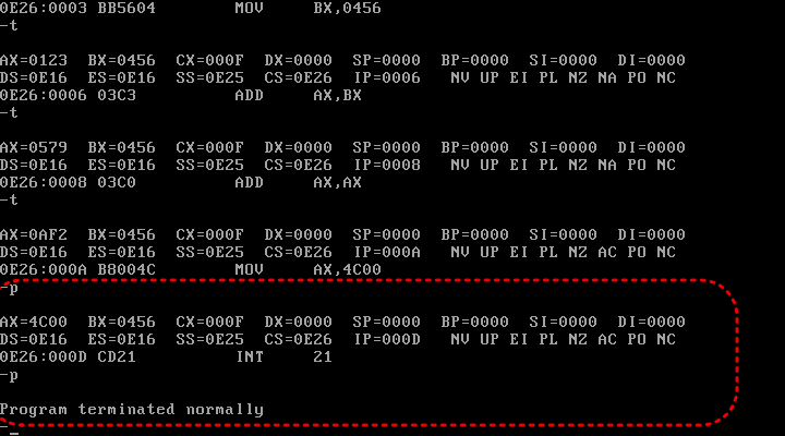 DOXBOX-X中使用debug功能跟踪程序的执行